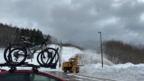 日光で走り出してからインフレーターが無いのに気が付きました手持ちのをマウンテンバイクに装着。タイヤもよくみるとスタッドレスのようなパターンですね。スノーシューを履いた人に自転車のスタッドレスはないのですか?と聞かれて、無いと答えてしまった…