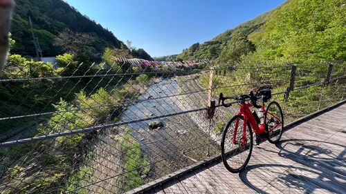板室温泉では鯉のぼりが川の上を泳いでしました。 コナミの風車も遠くに残雪があり良い感じです。 温泉神社に着きました。まだ桜が咲いていました。 恋人の聖地です 今年はじめての峠の茶屋です。 帰り道スダコーヒーによりました。あとから思ったのですがぎ…