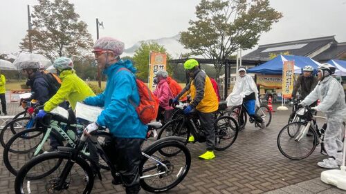 サイクルロゲインニングin下郷2023に参加してきました。 一日雨の天気予報。 雨とわかっていたので、シャワーキャップを買ってきてヘルメットの上に被せています。 私はシャワーキャップをしてからヘルメットを被りました。 今回は道の駅まで登りました。 観…
