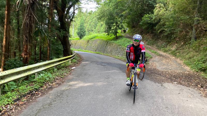 新緑の中を走ります。思った以上に坂を登って良い景色です。