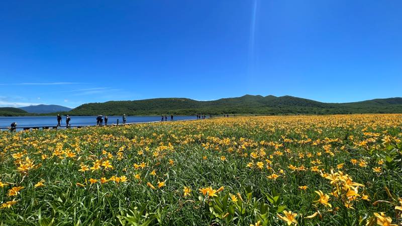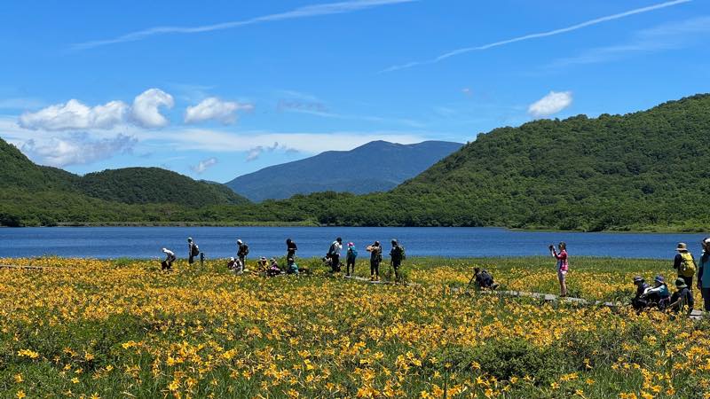 雄国沼は、去年はコロナでバスが出ていませんでしたが、今年はバスで沢山の人が上がってきていました。