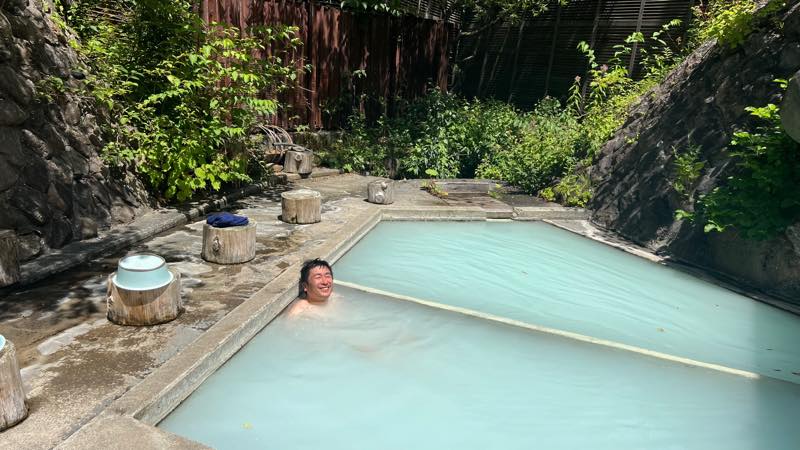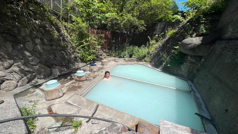 外の露天風呂だけということで案内してもらって露天風呂に行きました。