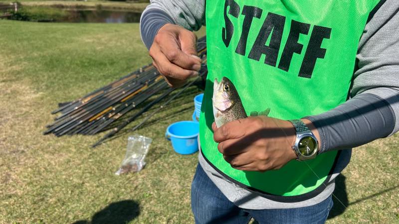 針に返しが付いていないので、かつおの一本釣りのように豪快に釣り上げました。
