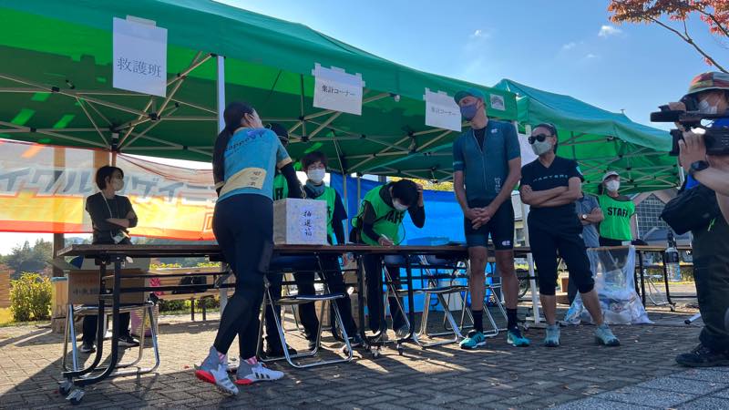 りんごはスタッフがまとめてスタート地点に届けてくれます。
