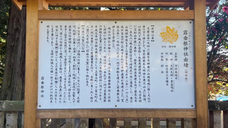 明治の神仏分離令により明治五年露垂根神社と改称し村社に加えられた。