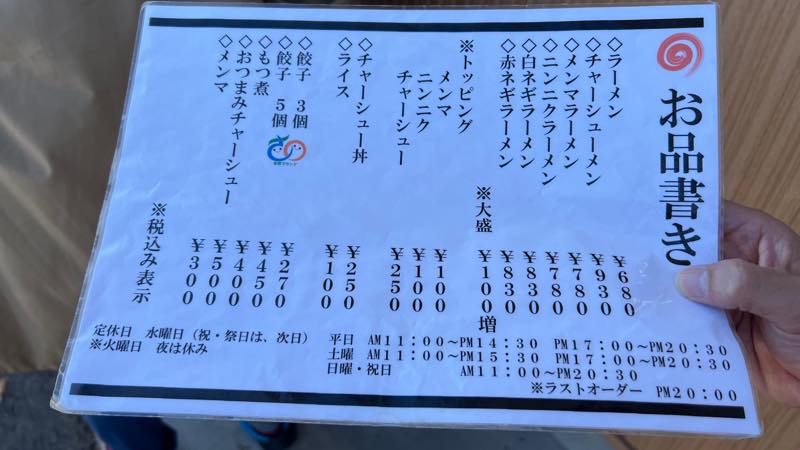ラーメン680円と餃子三個270円を注文しました。