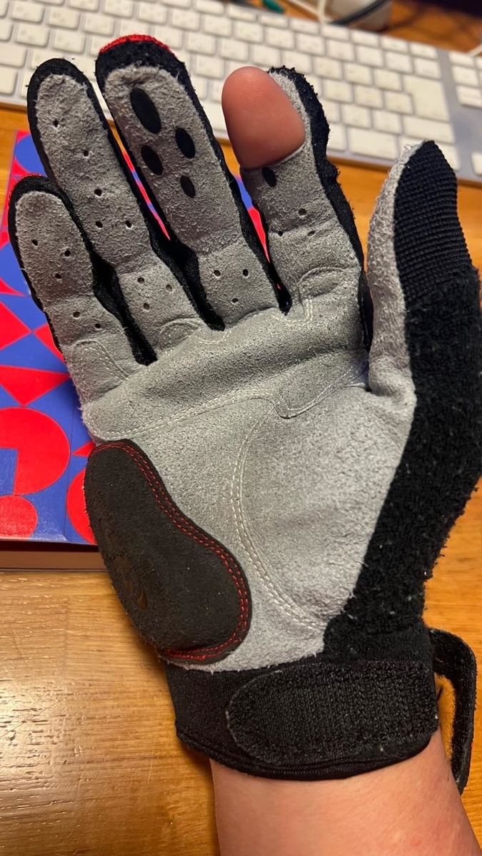 スペシャライズドのグローブがスマホが使えないので指が出せるように切りました。^^;