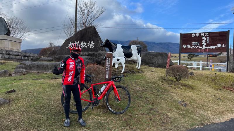 折角なので大笹牧場のモニメントの前で記念撮影です。