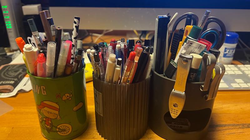 書類を書くのに、ボールペンと思ったのですが筆立てにバラバラには入っているので、一度全部出してみました。