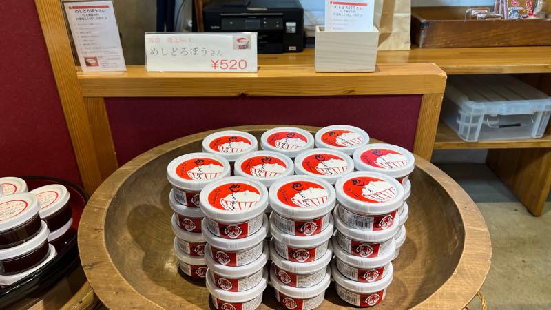 おすすめ商品は社長さんの発想から生まれた「めしどろぼうさん(しそ南蛮みそ)」です。「ご飯が盗まれたのでは?と勘違いするほど食が進む」ことから付いた名前ですが呼び捨てではなく「さん」が付くことでお釜が空になってしまってもどこか「憎めない感」があってちょっとかわいいネーミングです。