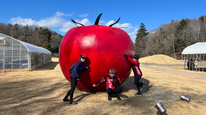 トマトのモニュメントで記念撮影しました。