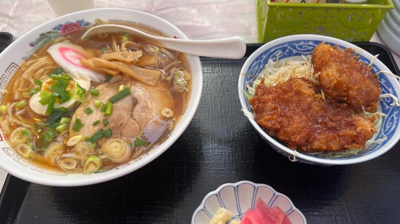 ラーメンは普通なのでミックスソースカツ丼(特大海老フライ付き)がお勧めかもしれません。^^;