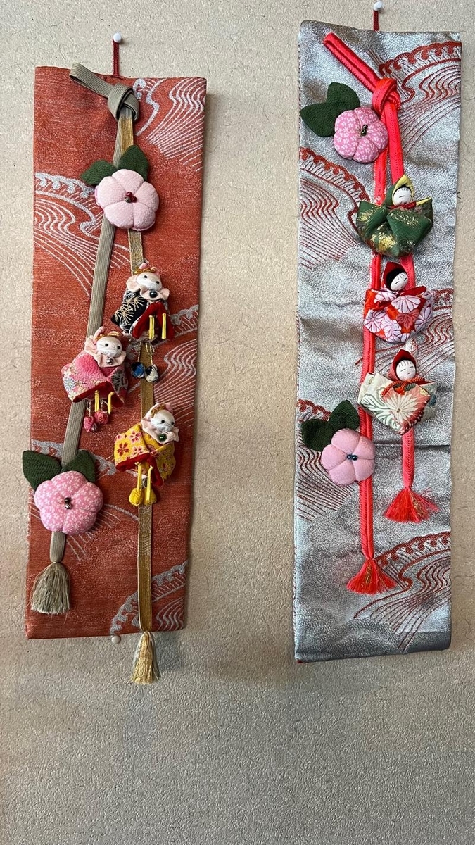 壁には、帯に付けたお雛様が飾っていました。
