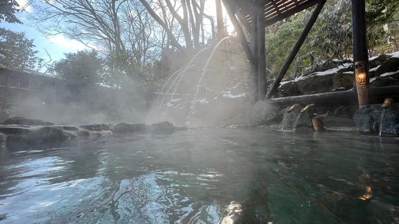 露天風呂(大滝の湯、綱の湯(立ち湯)、鮫川石の湯、茅葺屋根の湯)、内湯(畳敷きの大浴場、檜の内湯、十和田石の内湯)の計7種類の湯処があるそうです。