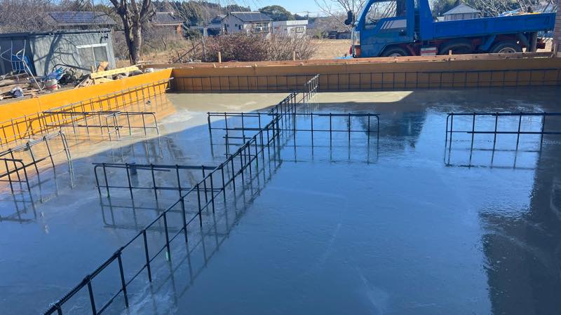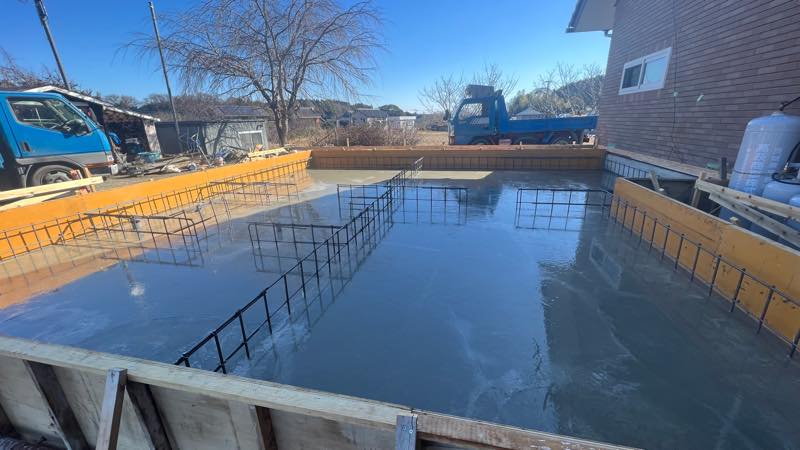 ちょうどコンクリートを打ち終わったところでした。