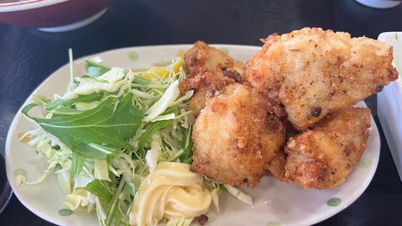 Sさんは唐揚げセットで唐揚げと半ラーメンで950円