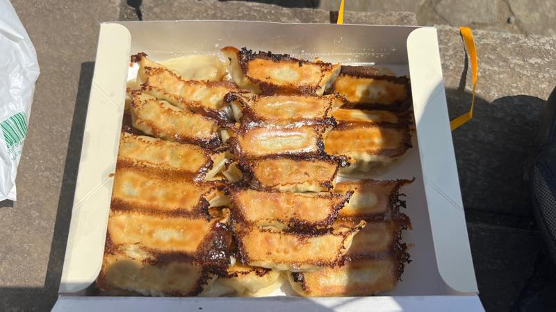 花見をしながら焼き立ての餃子は、美味しかったです。