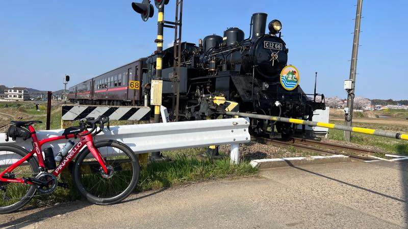 ちょうどSLが戻りで走ってきました。ラッキーです