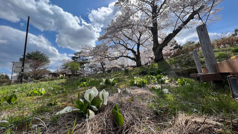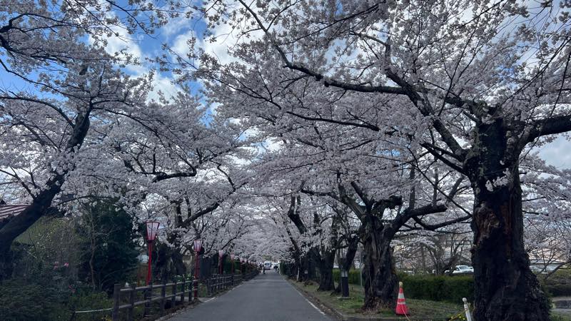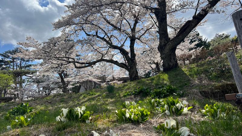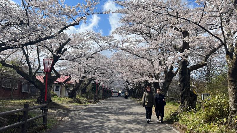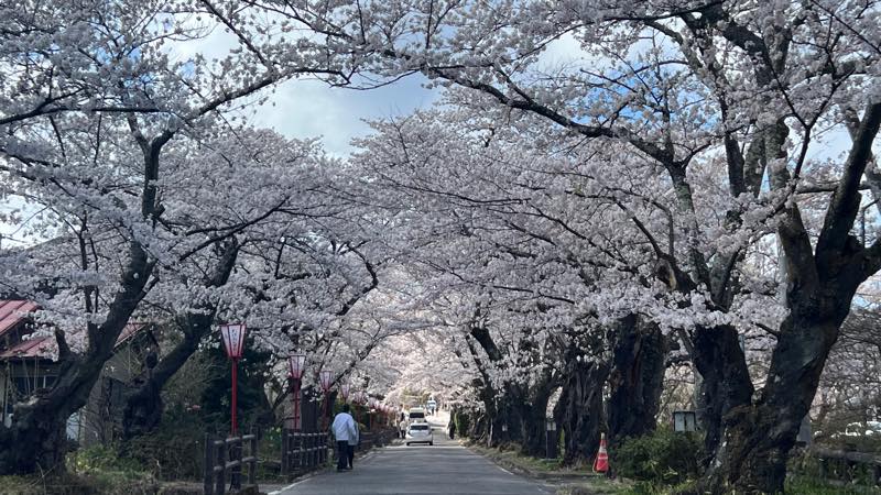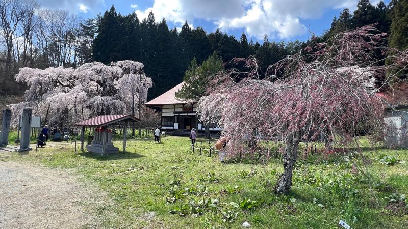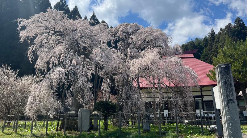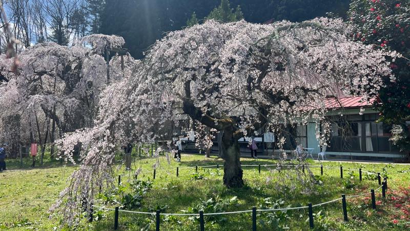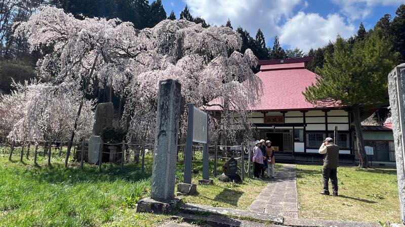 三春滝桜の姉妹樹と言われる樹齢約400年の大木。根回りが4.1mもあり、福島県の天然記念物に指定されています。