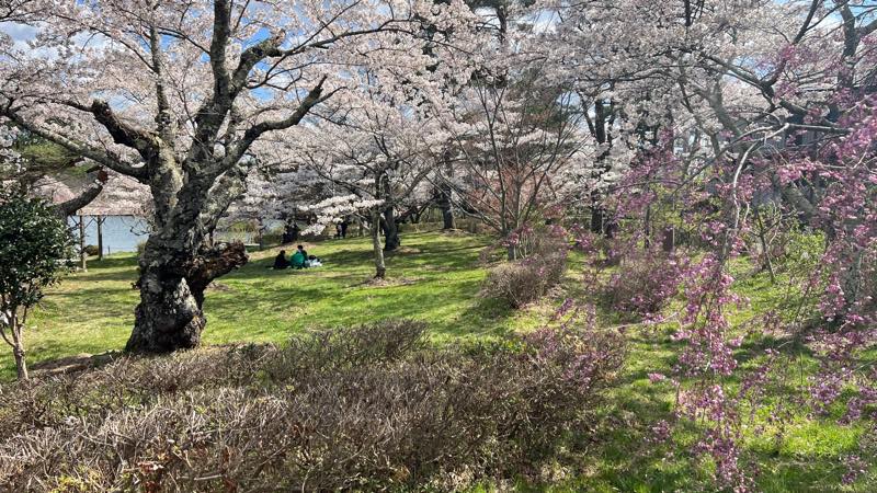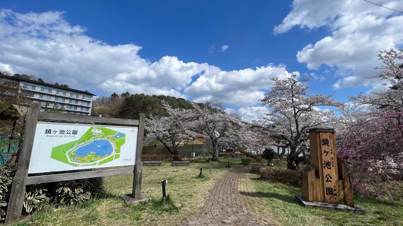 鏡ヶ池公園も桜が満開で人も一杯でした。