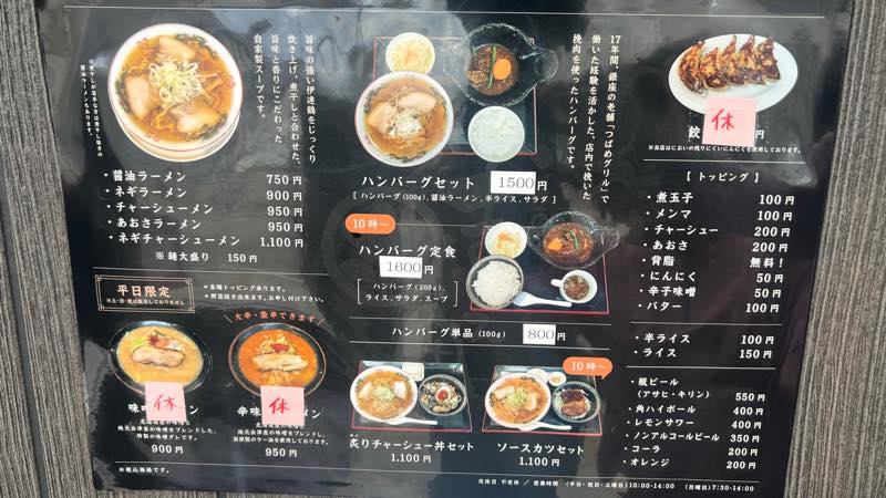ここのラーメン屋さんはハンバーグが人気です。