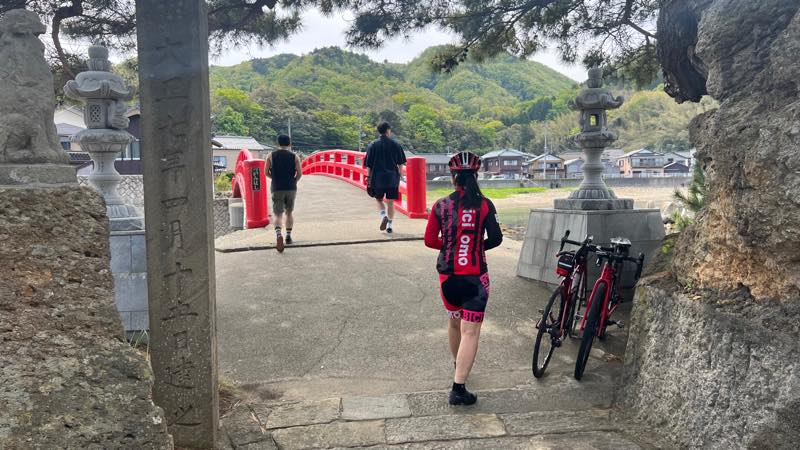 赤い橋を渡って島にある神社に行きました。