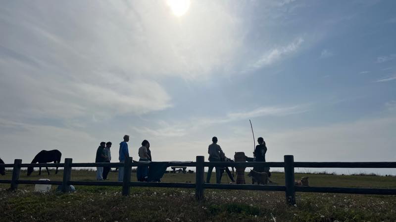 馬が連れてきたのか、放牧されていました。