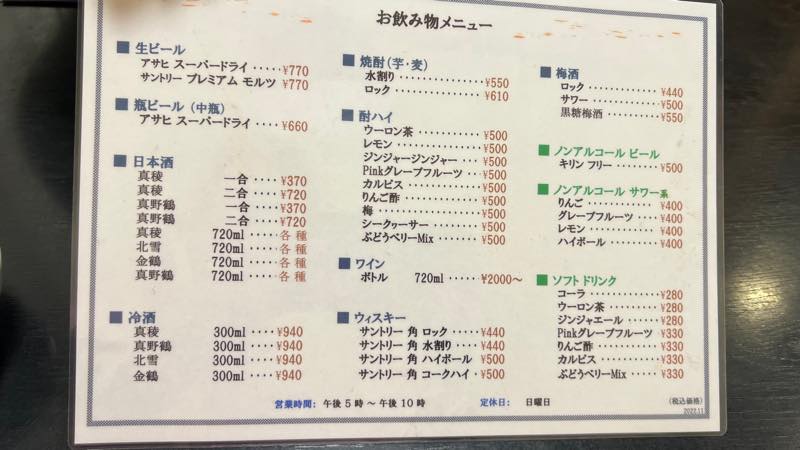 料理は2000円で安いのですが、飲み物がビールが770円と高めです。