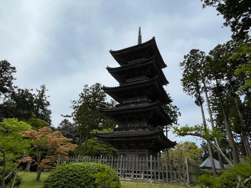 新潟県内に現存する唯一の五重塔で、江戸時代に相川の宮大工茂三右ェ門親子が二代に渡り建立したといわれ、日光東照宮の五重塔を模したとされているそうです。