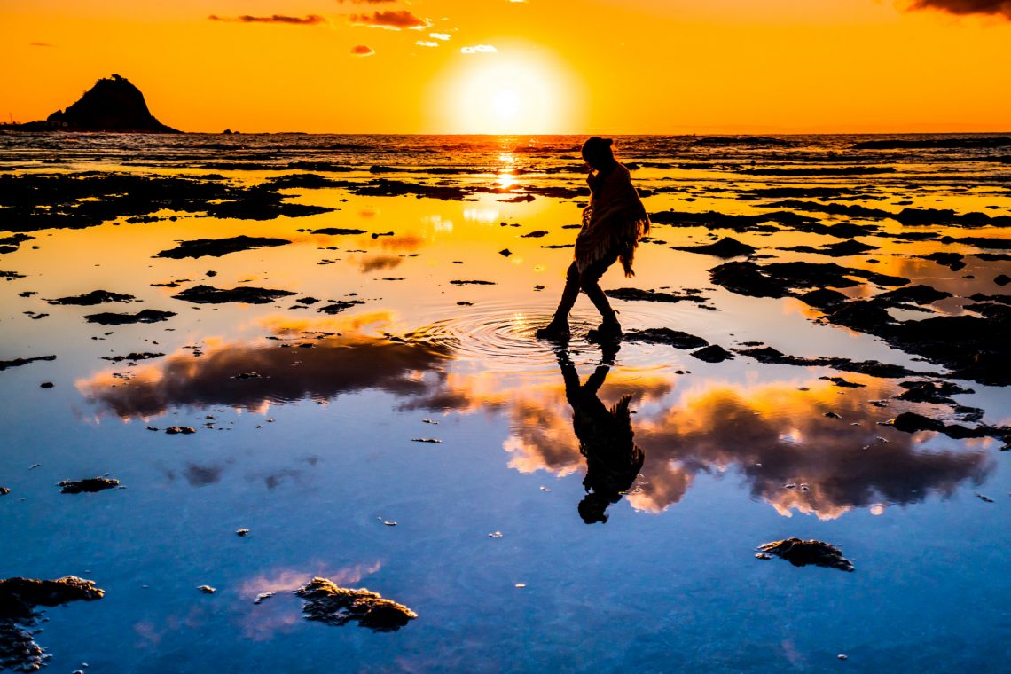 満潮時はウユニ塩湖のようなリフレクションがキレイな万畳敷。
