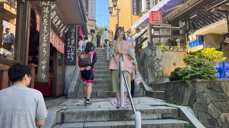 伊香保温泉石段街です。スタッフのビブを来ている人が居たので何かイベントがあるのかを聞いたら、これからラリーカーが98台ここを通るということでした。