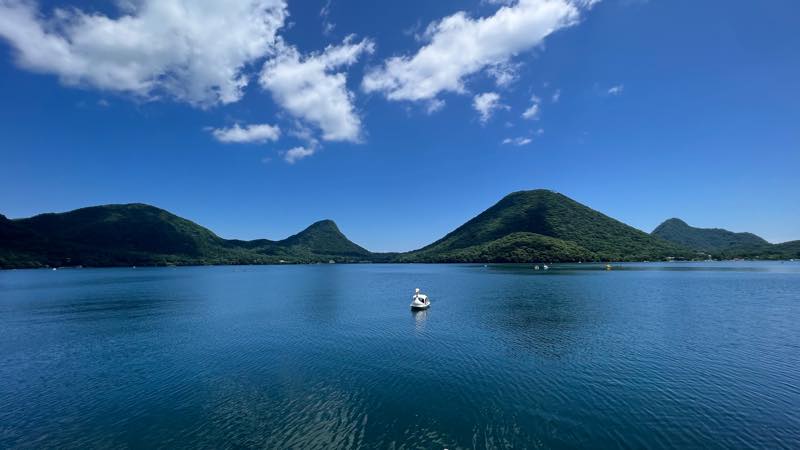 上毛三山の一つ、榛名山の火山活動によって生まれた、標高1,100メートルにある榛名湖。