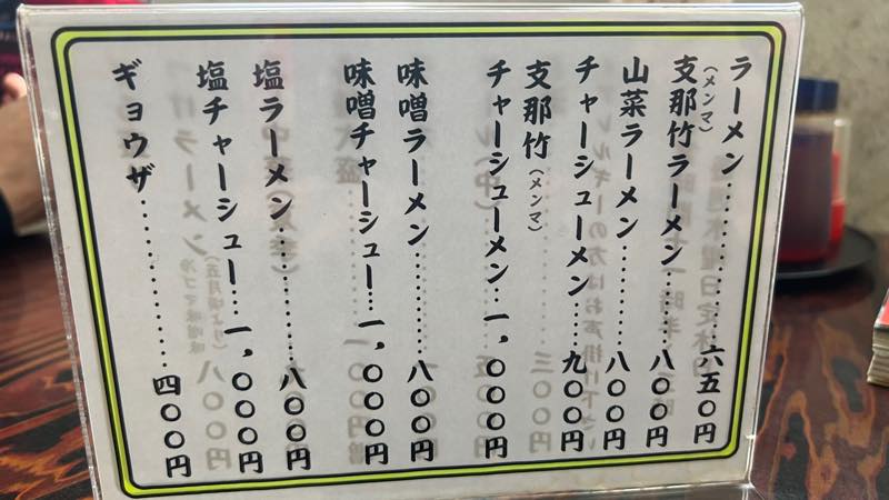 支那竹ラーメン800円と味噌ラーメン800円を注文しました。