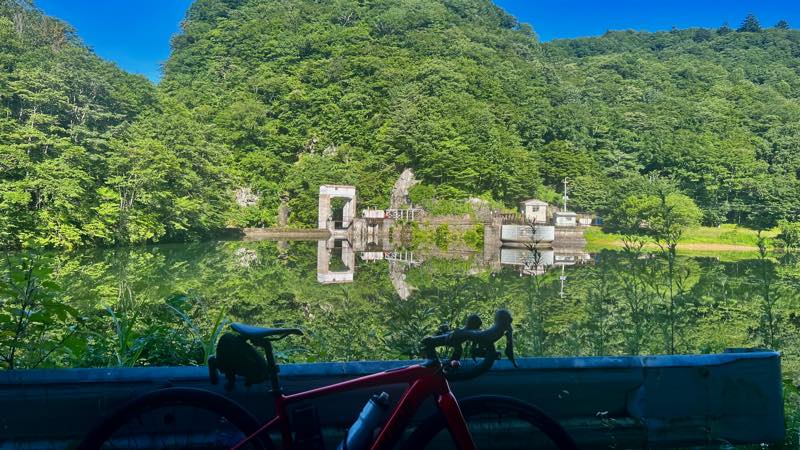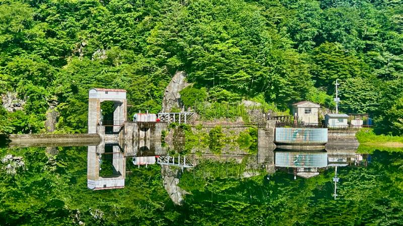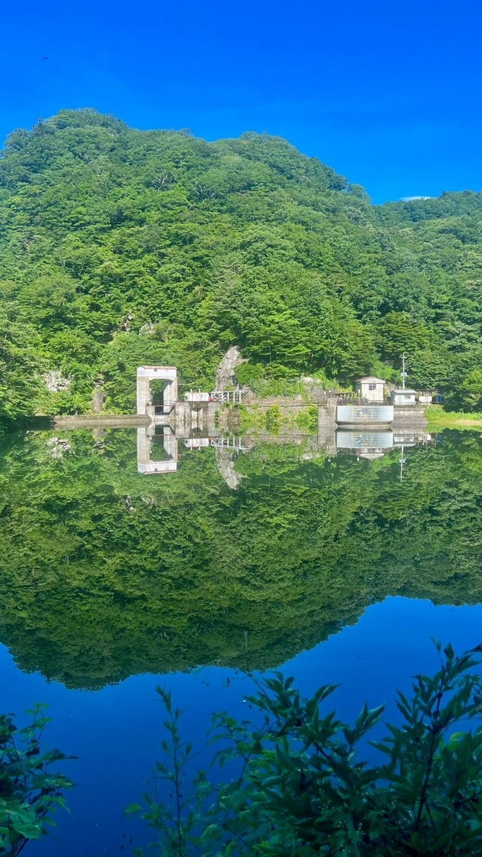 土呂部ダムです。風がなく水面が鏡のようになっていました。