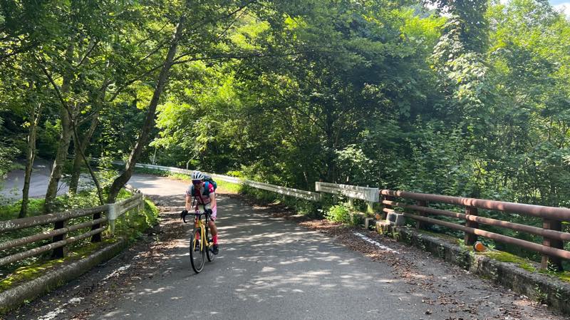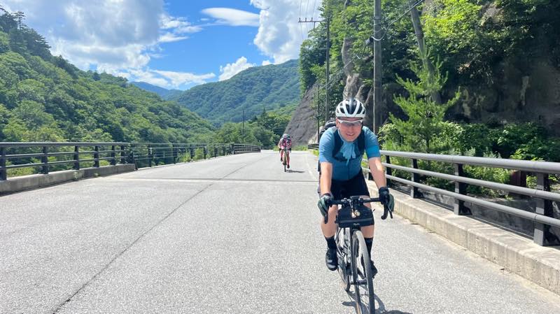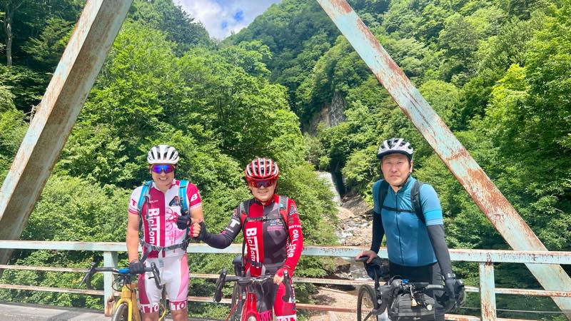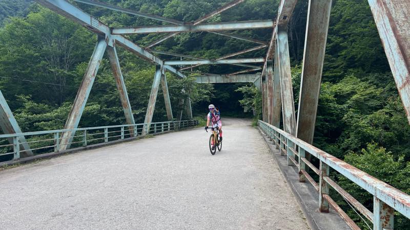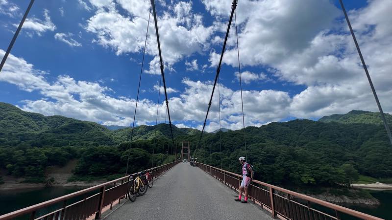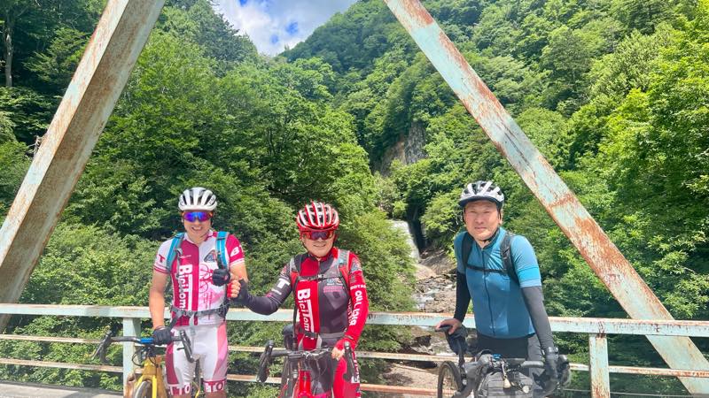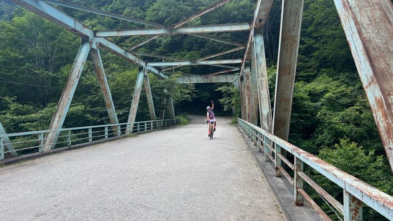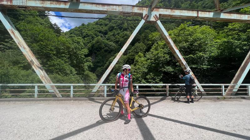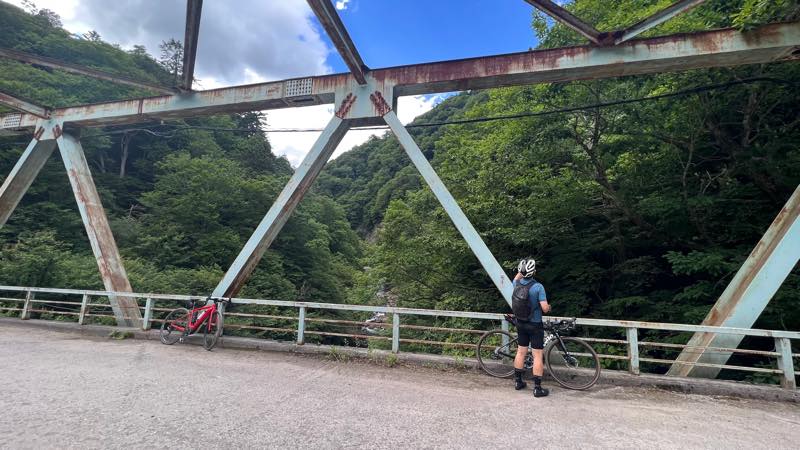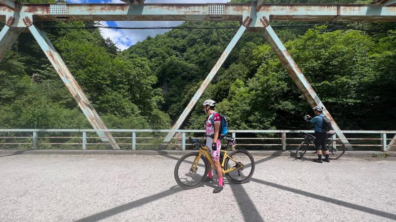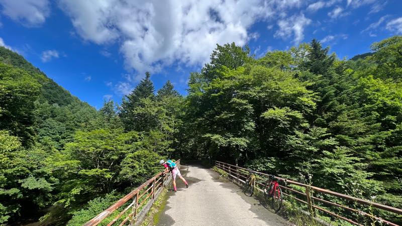 奥鬼怒スーパー林道の入り口の橋で記念写真です
