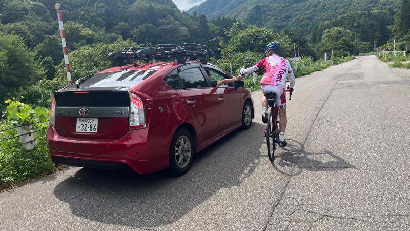 金子さんが長寿の泉にボトルを忘れてきたので、サポートカーが取ってきました。