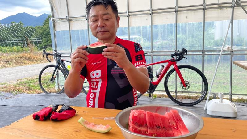金子さんのところでスイカをご馳走になり、お土産まで頂いてしましました。