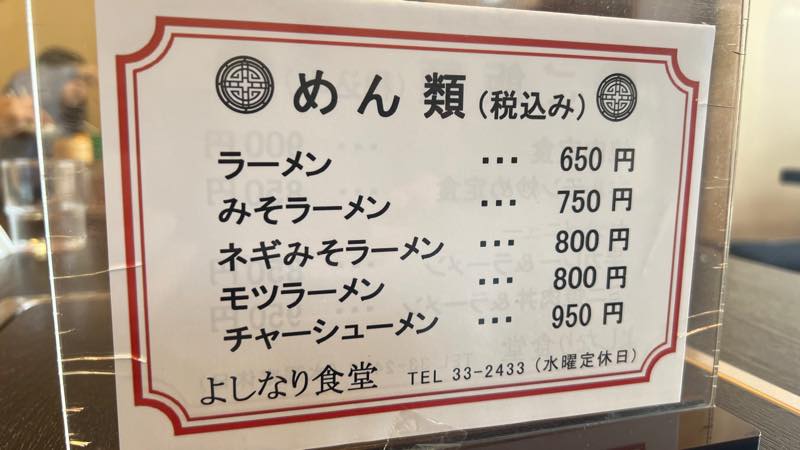 メニューはシンプルでラーメンが650円