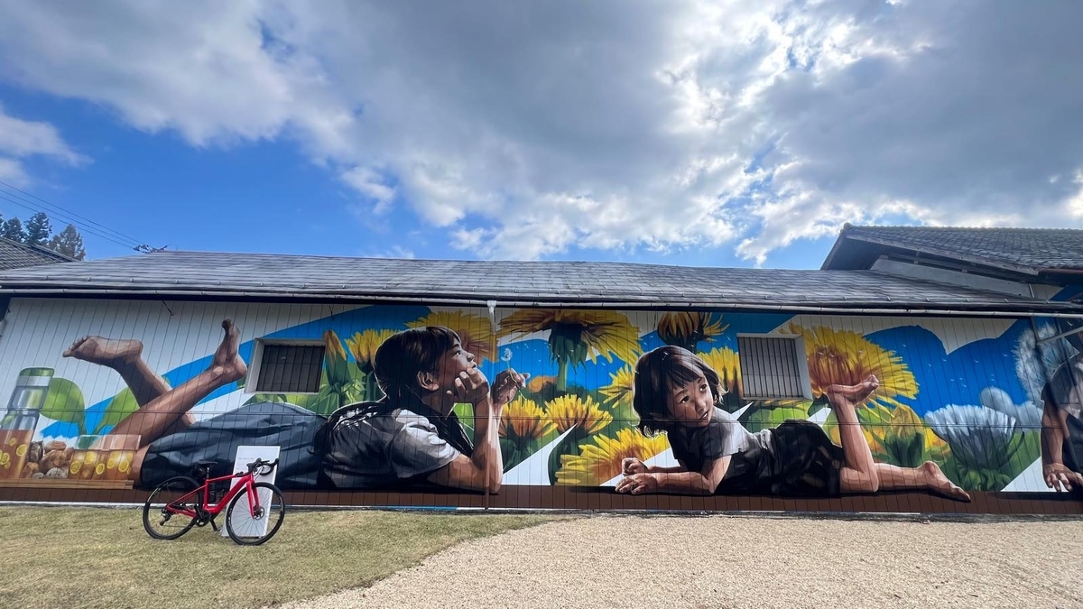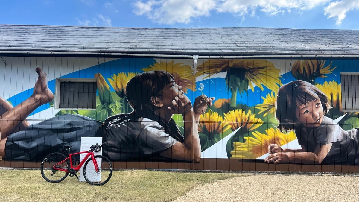 壁画制作と同時進行で子どもたち約100人が町に繰り出し、たんぽぽの綿毛を描いたということです。