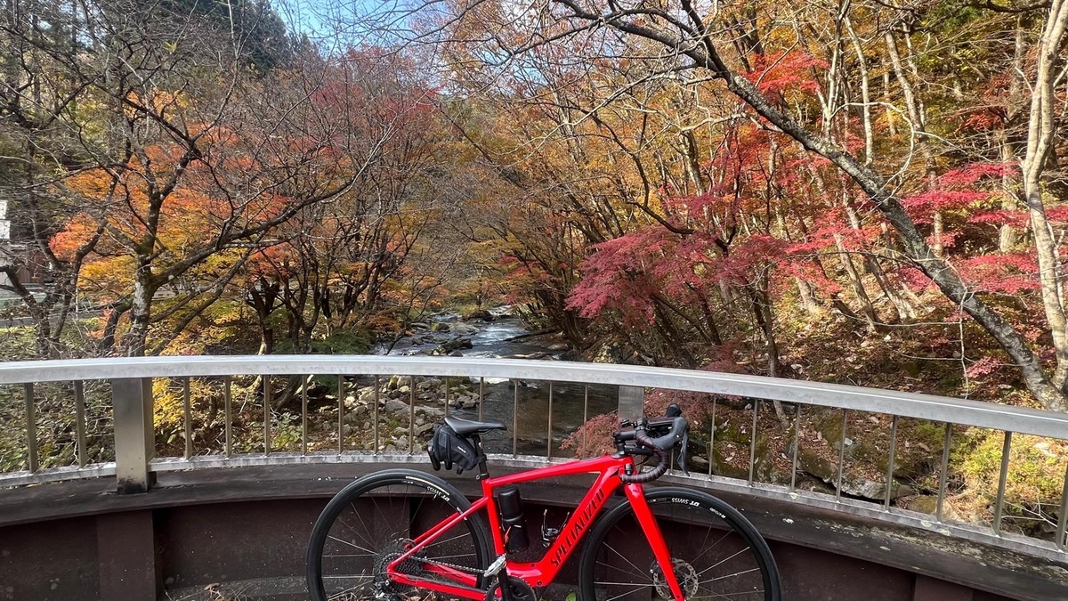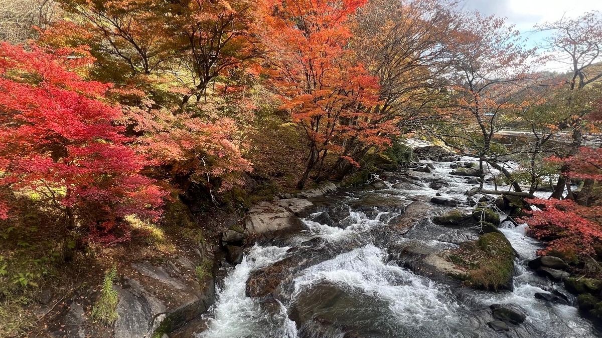 強滝(こわだき)に着きました。 秋には木々が鮮やかに色づきます。毎年、その様子を写そうと多くの人が訪れ、川のすぐそばには遊歩道もあり、川沿いに散策を楽しむことができます。 また、この地域の周辺8.3ヘクタールは、福島県の自然環境保全地域に指定され、後世に豊かな自然環境を残すために保全が図られていて、遊歩道は「ふくしま遊歩道50選」にも選ばれています。