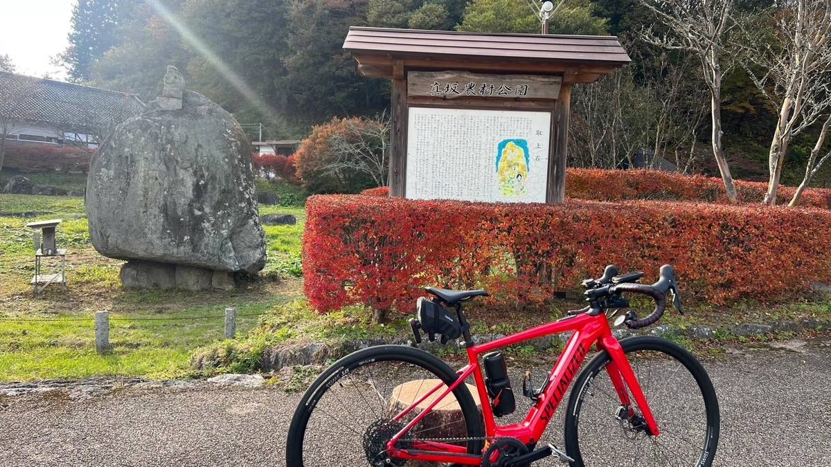 真坂農村公園に着きました。 安産や五穀豊穣の祈願対象として古くから信仰されてきた取上石を中心に整備された農村公園ということです。 真坂農村公園にぽつんと佇む取上石は安産や五穀豊穣の祈願対象として古くから信仰されてきました。 この取上石を中心に真坂農村公園が整備され、地域の憩いの場として親しまれています。