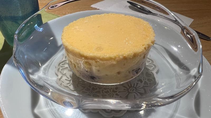 Mさんはダークチェリーの焼きプリンでシロップ付けのチェリーを入れてキリッシュ(お酒)で香りを付けて焼いたプリンです。