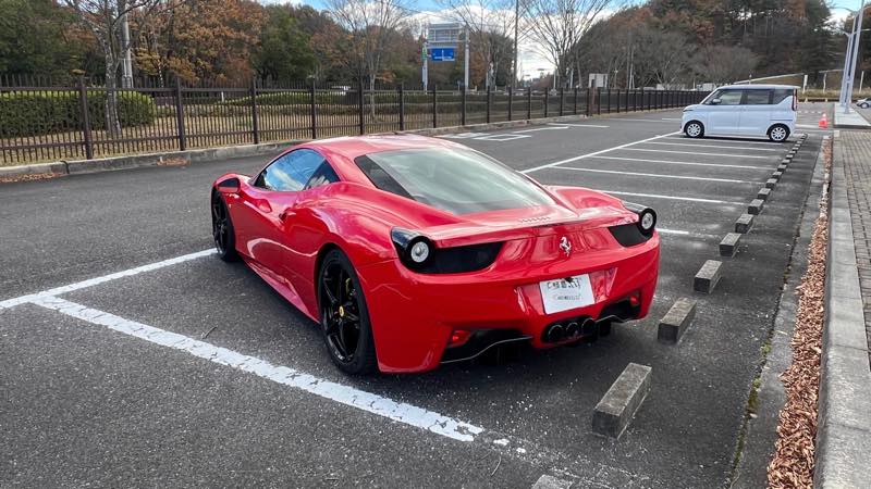 福島空港に来たら、ランブルギニーとフェラリーが並んでいました。