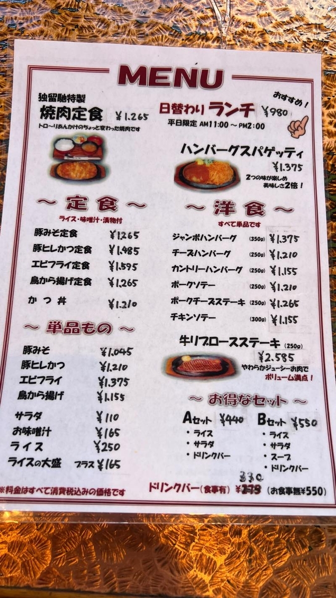 焼肉定食1265円と鳥唐揚げ定食1265円が人気です。