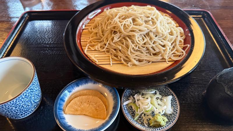 前は茹ですぎとか天ぷらが良くなくて衣を剥がして食べたけど、隣の人の天ぷらは綺麗に揚がっていた。今回は盛り蕎麦にした。
