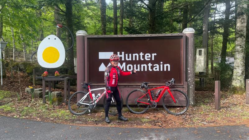 ハンターマウンテンに着いた。看板の前で記念撮影。