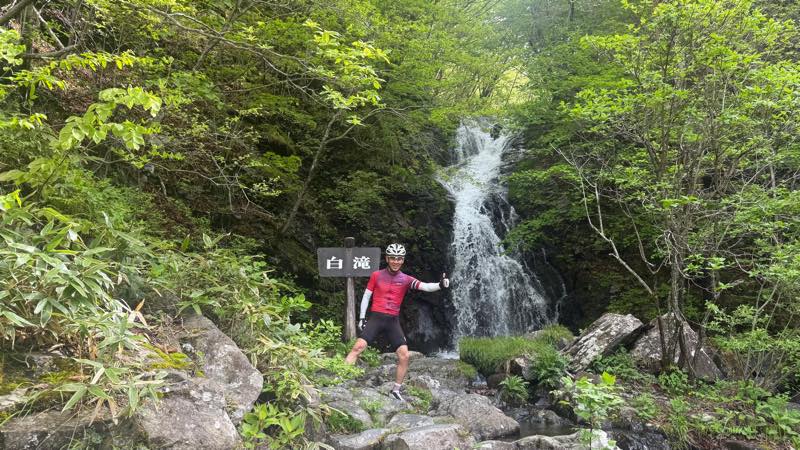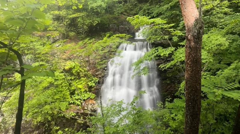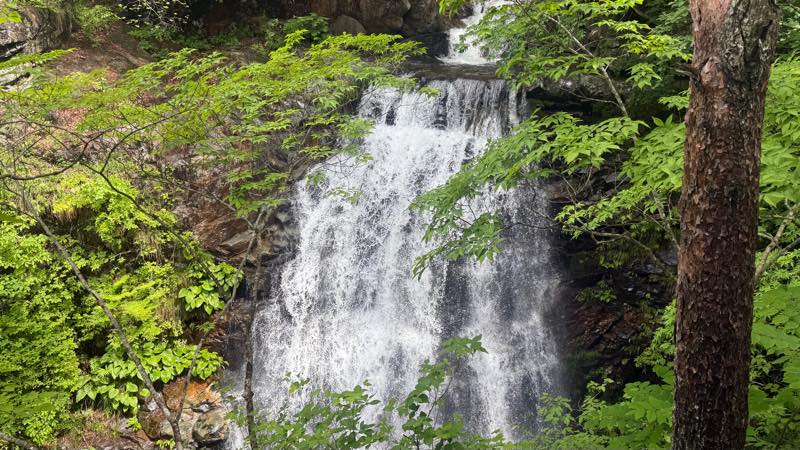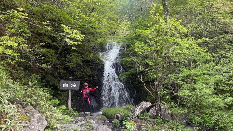 頂上付近に到着。雨が降ったおかげで白滝の水量もあり見応えがある。