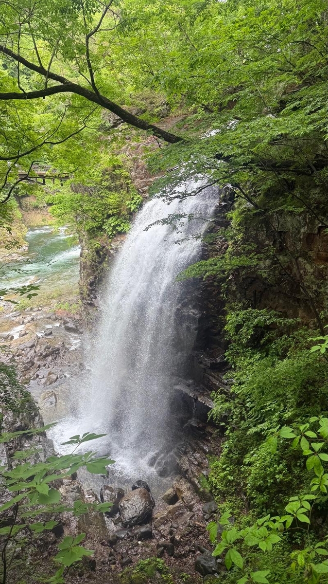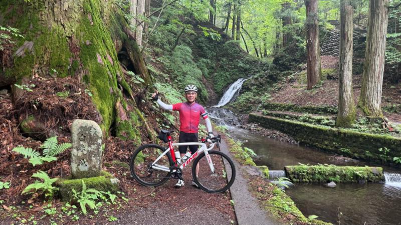 正面の滝は虹見の滝です。滝のある野沢は角関輝者関