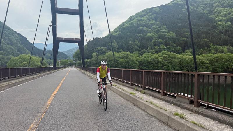 標高1434mにあるこの橋からは、栗山ダムや遠く筑波山などを望むことができ、早起きすれば関東平野から昇る日の出を見ることもできる。