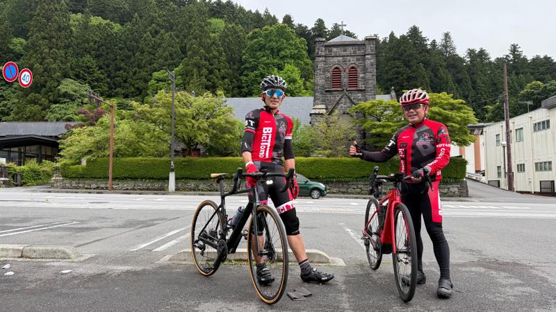 近くに居た、アシストのレンタサイクルで来ていた人に写真を撮って貰った。